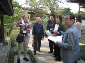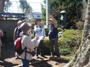 定期的に上尾市内の観光スポットに出向いて、例会等で纏めた資料をベースに、ガイド実習を行っています。会員が交代して、繰り返しガイド実習することにより、会員相互のガイドレベル向上を目指しています。