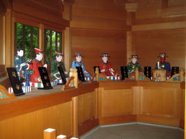 十連寺境内には八角十王堂があります。中を覗いてみると、十王像が円形に祀られています。人が死ぬと冥界に住む十人の王から順番に裁き・判定を受ける事になる、という信仰があります。