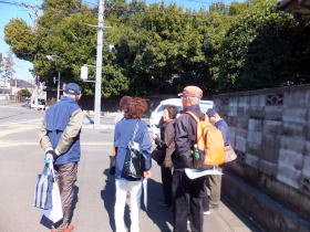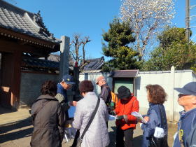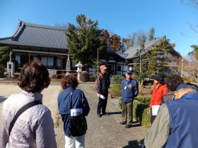 3月15日に大石ウオーキングクラブの4名の方に上平コースをご案内しました。北上尾駅前からガイドスタート、風が強かったものの元気に出発しました。