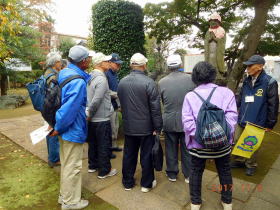 最初の原市大通りでは、原市の歴史や「三・八の市」ついて矢部家周辺で解説しました。矢部家に有る、上尾市指定保護樹木のハクモクレンは実物を見上げて、その大きさに感嘆されていました。
