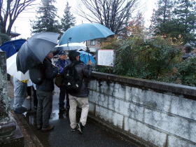 当日は、低気圧の接近で朝から生憎の雨の一日になった。お客様のご要望で実施しましたが、傘が手放せない悪天候の中、全員無事に完歩しました。