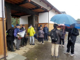 妙厳寺では、メンバーの永楽通宝紋鞍付き鐙一式の写真を使っての解説や、西尾隠岐守一族の墓の説明にゲストの方々は雨の中、熱心に聞き入っておられた。