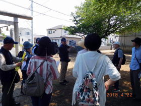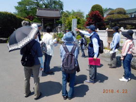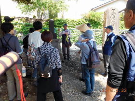 柏座の「女人庚申塔」・「しょうつかの婆さん」の石造をメンバーが説明。大半の方が『初めて見ました』と驚かれ、ユーモラスな雰囲気の石造に近づいてご覧になっていました。春日神社・神明神社は時間の都合もあり、基本的な説明だけで終わってしまったのが残念です。