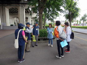 当日の朝方は曇り空で昼前から雨になり、後半は雨の中、傘を差してのガイドになった。多少歩くペースは遅かったが、全員無事に完歩しました。