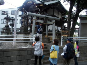 沼南駅でゲストへのガイド場所や注意事項の説明やガイドメンバーの紹介のあと、6/2(土)のあげお駅からハイキングのパンフレットを渡してご案内した。また、メンバーが原市東コース、原市沼の古代蓮も説明した。その後、原市稲荷神社〜原市大通りまで5箇所の社寺、ポイントをご案内した。