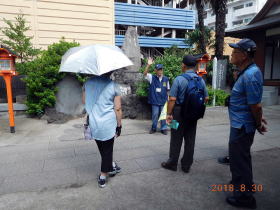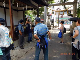 スタート時は薄曇りでガイド日和を期待しましたが、氷川鍬神社では陽が射して来て、猛暑が戻ったような天候で、日陰を拾いながら熱中症に注意してのガイドでした。