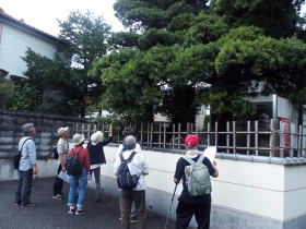 長久寺の茶屋で小休止した後、原市大通りに移動して、矢部家の前で原市の歴史や三・八の市の説明と上尾市指定樹木のケヤキ、ハクモクレンは実物を鑑賞しました。ゲストの皆様は、三角家の立派な蔵や、カフェ・ギャラリー山本屋の由緒ある建物に感嘆されていた。