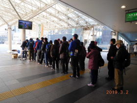 受付の9時のスタート時は風があり肌寒かったが、ハイカーの皆様は上尾駅コンコースでの受付を待ちかね列を作られていました。