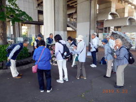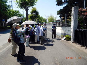 当日は朝から晴天の一日で、日中は夏日の暑い日和になりました。今回は女性の参加者が多く、日傘や帽子を着用されて、水分補給をしながらのガイドになりました。約2時間の散策で有りましたが、全員無事に完歩された。