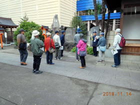 郷学の上尾郷二賢堂跡・氷川鍬神社の名前の由来伝説、聖徳太子の像、芭蕉の句碑など紹介しました。江戸時代から上尾は教育熱心な土地柄で有る事をお伝えしました。また芭蕉の句碑では上尾宿には風流を解する人々がおられたことを紹介しました。「芭蕉は上尾宿に来られたのですか」との声が聞かれました。