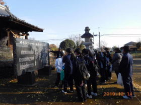 ゲストの皆様は昨年に続き、今年も大石地区のイベントで地域の道路のごみを清掃しながら、地元の寺社を巡り、郷土の歴史を学ぶ行事に参加されています。当ガイド会は諏訪神社のガイドを依頼され、イベントのサポートをさせて頂きました。