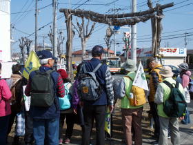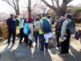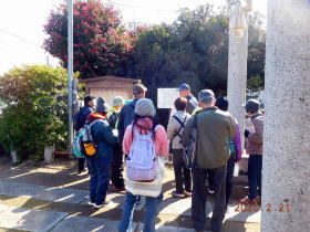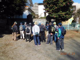ガイド会メンバーの紹介、各班のガイド・サポート編成、コースの概要、注意事項の説明の後、穏やかな晴天もと谷津観音堂に向けスタートしました。今回は「上尾の民間信仰」を副題にしました。