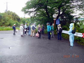 皆様が丸山公園南口に集合した時は小雨がぱらつきだしました。