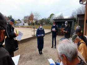 どんよりとした雲はいよいよ厚く暗くなり、今にも雨が降り出しそうな怪しい天気になりましたので、ガイドはここで終了とし、残りは次回のお楽しみといたしました。参加者の皆さんは3台の車で上尾駅、北上尾駅まで無事にお帰り頂きました。