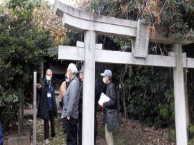 菅谷北城跡では、歴史書籍「太田資正と戦国武州大乱」の著者3人のうちの一人である原口和子さんから、中世の上尾に関して、将軍足利尊氏よりこの地(桶皮郷内菅谷村)を拝領した春日氏への文書(花押付き下し文)、春日氏の系図等の歴史公証に基づき、分かりやすく説明がなされました。戦国時代以降の天守閣のあるお城と違い、土塁と堀を巡らした館であったことの説明があり、今は竹ヤブとなっている土塁跡に入ってみた人もいました。