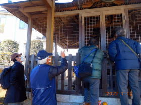 お客様は川越市で観光ガイドをされており、寺社彫刻にご興味を持たれている方々で、特に大谷本郷出身の寺社彫工(宮大工)の山田弥吉の作品を中心にガイドを依頼されていました。相互に紹介後、本日のコース概要と山田弥吉の作品について概略を紹介しました。また川越と上尾に関連した事柄を交えながら観光ポイントをガイドしました。