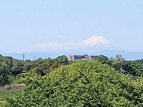 荒川土手の東屋からは前日の雨で空気が澄み、埼玉医大の向こう側に見事な富士山を遠望することが出来ました。