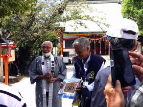 ゲストの皆様は木陰で絵馬を見ながら聞き入っていました。