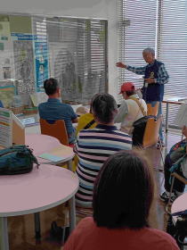 続いて、通称「どんぐり山」を経由して原市公民館に向かい、ショーウインドーに展示されている模型により、見沼代用水路・瓦葺掛樋の歴史について解説しました。