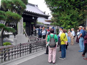 そして、西尾吉次の菩提寺・妙厳寺を見学して、終点のニューシャトル沼南駅に向かいました。原市藩の陣屋跡や西尾氏代々11代には多くの質問がありました。