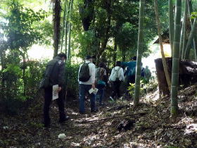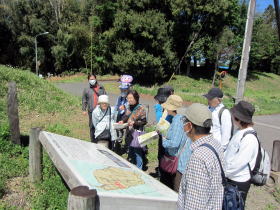 ニューシャトルの沼南駅に「ぐるっとくん」で集合、その後丸山駅に移動し、陣屋跡に向かう。陣屋跡での説明は、伊奈屋敷清掃ボランティア等で活躍した丹下さんが行い、障子堀跡・二の丸跡・頭殿権現社等を雉・ウグイスの声を聴きながら散策。 散策路はよく整備され、土塁・堀跡など当時の面影を残しており、気持ち良く散策できました。