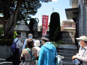 上尾歴歩会様は昨年度、原市東・西コースをガイドさせて頂きましたたが、今回は、特別コースとして、原市と隣接している、伊奈備前守忠次の陣屋跡を訪ね、その後、前回ご案内出来なかった原市愛宕神社・佐四郎稲荷・寶蔵寺等をご案内しました。