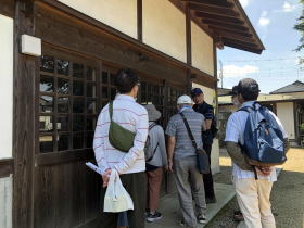 平方河岸跡では開平橋名前の由来、当時の舟運の重要性について、平方の町並みでは石倉家・馬車屋・呉服店等古民家の説明。
