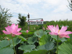 近くにある妙厳寺の600年前の文献には、ハスの花が咲いていた記事があり、蓮は当時原市沼には至るところで見られた風景だったと思われます。