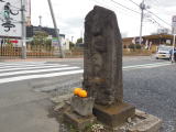 庚申塔は村のはずれに建てられ、邪気や悪霊を防ぐ役目も有りました。上尾宿は上・中・下宿に別れ、上宿の庚申塔の場所は上尾宿の家並みの最北端であったろうと思われます。延享2年(1745)建立、側面に「上尾上町講中」と刻まれています。以前はたばこ屋が有りましたが、空地の角に寂しそうに立っています。 |