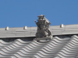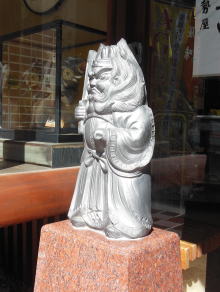 鐘馗様は中国に伝わる道教系の神様とされているが、諸説あり、唐の時代に実在した人物だったという説が最も有名です。鐘馗様は右手に破魔の剣を持ち、左手で人間の苦しみを抑えて、周囲を睨みつける姿は、疱瘡除けや学問成就に効験があるといわれています。日本では、江戸時代末(19世紀)ごろから関東では鍾馗様を五月人形にしたり、近畿では魔除けとして鍾馗様を屋根に置く風習が見られるようになりました。(岩槻の「人形歴史館」福田東久氏の話)