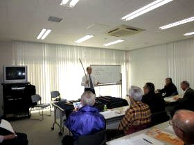 3月8日(火)のガイド会例会で、特別講演「日本刀の輝き」が行われました。日本刀鑑定家である遠山正博氏に、日本刀の歴史、見どころ、奥深さ、刀剣鑑定にまつわる話等、多岐にわたるお話しをして頂きました。また、貴重な日本刀6振をご持参頂き、間近で拝見し、触らせて頂くことができました。遠山氏は地元上尾市の名士であり、室町時代から続く遠山家第21代当主で工学博士です。日本刀の成り立ち、外国の刀剣との違い、各年代(伝法)ごとの特徴等について、日本刀の実物を手にとって分かりやすく解説して頂きました。実戦で使用して刀についた傷の説明もあり、数百年前にどんな武士がこの刀を振るって戦ったのだろう、と身近に感じられました。太刀は手にとるとズッシリと重く、20kgもあるというよろいをつけて、この重い日本刀を振りまわして戦っていた武士の腕力、体力に脱帽です。私ならば3分間も戦えないでしょう。