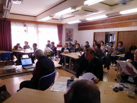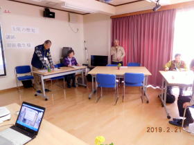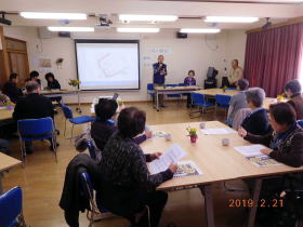 講演の前に、サロン世話役の山本様より挨拶と、講師の宮田さんの紹介がありました。講師の宮田さんから、先ず今日のメンバー紹介の後、小島会長より「あげおアッピーガイドの会」の目的と活動についての数分説明し、活動の様子を写真にまとめた資料を回覧しました。
