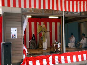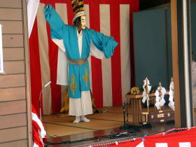 午前11時から神主による神事が執り行われ、正午過ぎから約1時間、さいたま市の松澤社中による神楽が奉納されました。