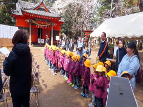 4月2日(火)に風が吹いて少々寒いけれど晴天のもと、上氷川神社で大祭が開催され、神楽が奉納されました。