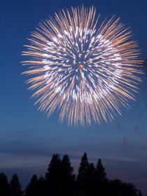 18:45からの大会セレモニーでスタートして、上尾市観光協会会長の畠山市長や、来賓の挨拶の後、実行委員長の開会宣言とカウントダウンにより、19:00から打ち上げ開始。夜空を彩る大きな10号玉や華麗なスターマインなど、終了時間の20:45まで、約10,000発が打ち上げられて、上尾の夏の夜空の競演を楽しめました。