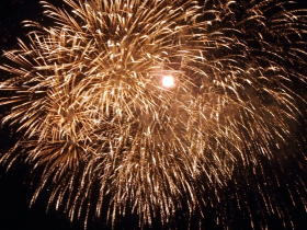今年の関東地方は、梅雨明け後の連日の猛暑日で、当日もお天気には恵まれましたが昼間の暑さも残る中、日没後は河川敷を渡る夜風で若干涼しく感じられ、ゆったりと鑑賞出来ました。