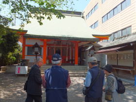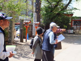 4月23日(木)に、上尾市在住のIさんご夫妻に中山道上尾宿コースをご案内しました。快晴のもと、魔除けのために屋根の上に安置してある鐘馗様を見て頂いたり、氷川鍬神社にお参りして、由来などとともに、上尾では江戸時代から 寺子屋教育が盛んであったことなどなどをご説明しました。遍照院では副住職のご厚意で本堂に上げて頂き、ご本尊や千手観音を拝観させて頂きました。上尾に住んでいても、知らなかったことが多く、とてもおもしろかった、とのことでした。(宮田記)