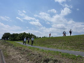 ![]() 荒川堤を歩くハイカーたち |
