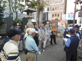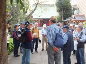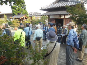 10月20日晴天に恵まれ、風のない穏やかな散歩日和のなか、上尾アブセッククラブ21名の皆様に中山道上尾宿をご案内しました。氷川鍬神社をスタートし、屋根の上の鐘馗様、本陣・脇本陣、遍照院とガイドし、最後は遍照院のご住職のユーモアを交えた法話をお聞きしました。また、約2.5時間のガイド中、活発な質問もいただき、和気あいあいの雰囲気のなかで終了しました。 (小島記)